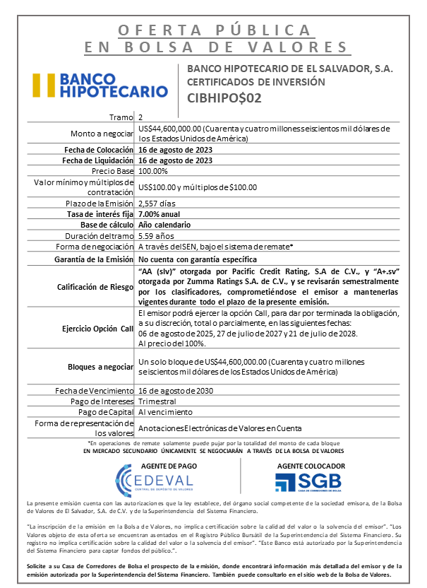 AVISO COLOCACION CIBHIPO02 T 2